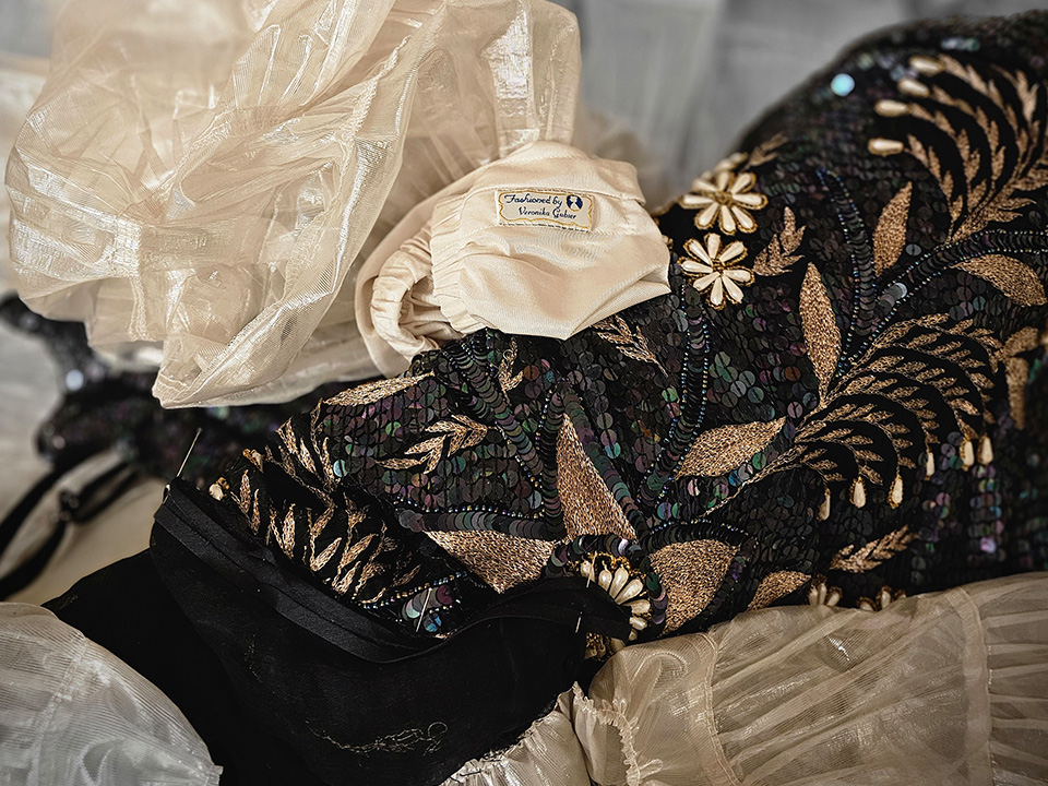 Frau Nils ist gelernte Schneiderin, Schnittechnikerin und Modedesignerin, dazu passionierte Bastlerin und Geschichtenerzählerin – kurz: Textilkünstlerin.